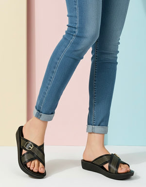Design details: Comfortable slides with memory foam and chunky lightweight outsole.