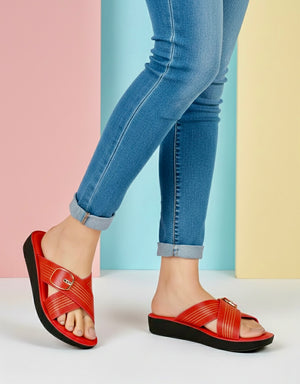 criss cross slides with memory foam insole.