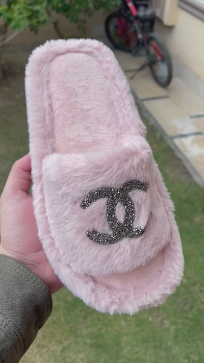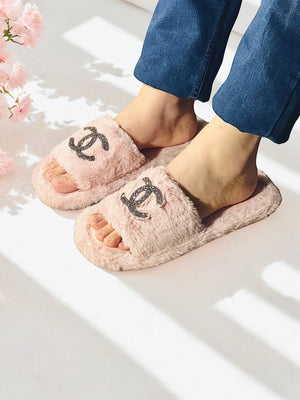 Home Chanel Fur Slippers