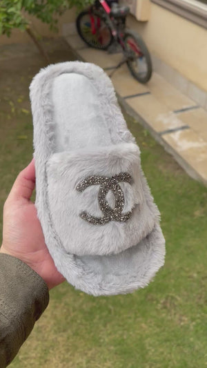 Home Chanel Fur Slippers