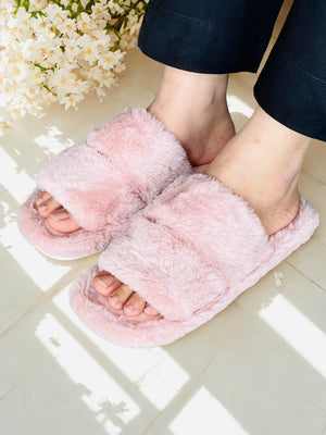 Ultra-soft fur slippers with double straps and cushioned sole for everyday comfort