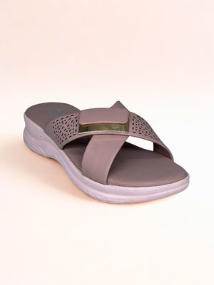 Design details: Comfortable leather slides with memory foam and chunky lightweight outsole.