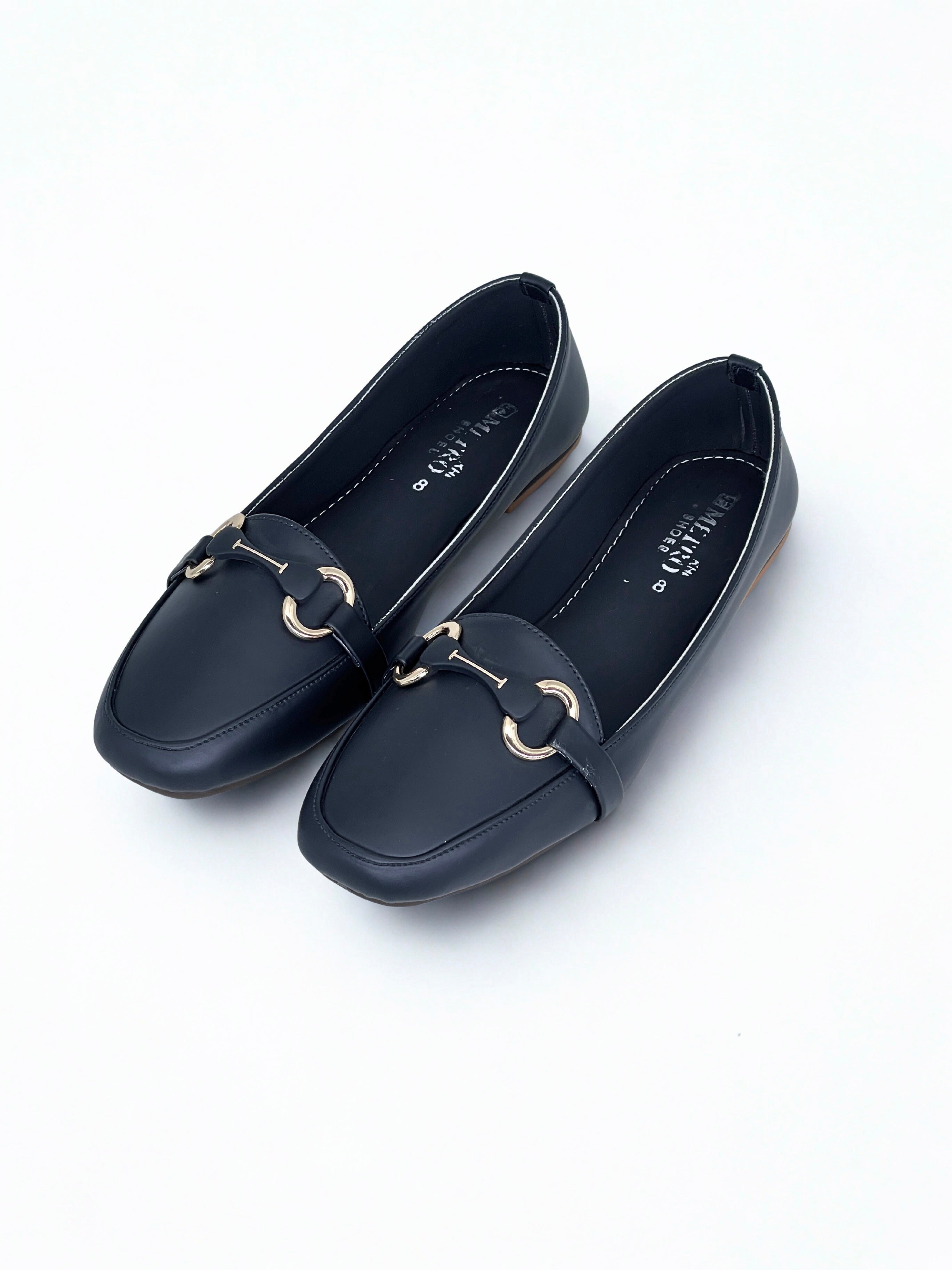 Everyday comfortable pumps with gold buckle, soft insole and anti-slip outsole.